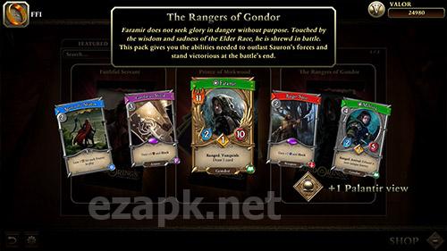 Experience the epic adventure of The Lord of the Rings in this living card game. Join forces with a team of heroes and journey through Middle-earth. Engage in intense card battles against the forces of darkness. Take on the ultimate challenge of facing Sauron and his army of servants in this thrilling Android game. Explore the far reaches of Middle-earth and use your skills to defeat evil and protect the innocent. Build a powerful deck of magic cards and showcase your strategic prowess in turn-based battles. Unlock new heroes to join your team and upgrade your cards to take on formidable foes. With legendary heroes, a variety of combat cards, stunning graphics and sound, and beautiful locations, this game will transport you into the world of The Lord of the Rings like never before.